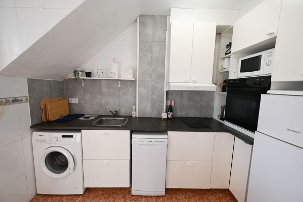 Accedemos a la vivienda por una escalera exterior y entramos al luminoso salón-comedor con aparato de aire acondicionado y cocina americana reformada hace tan solo 3 años, completamente equipada con horno y vitro, lavadora, lavavajillas, calentador eléctrico, nevera y microondas.
