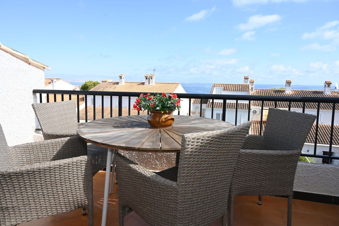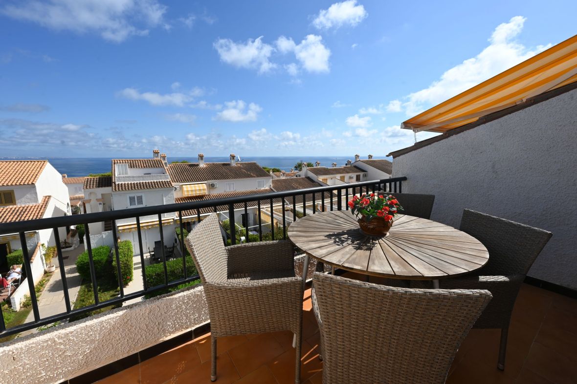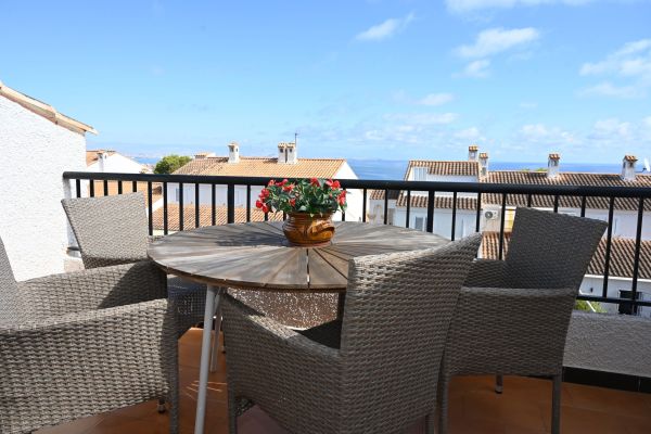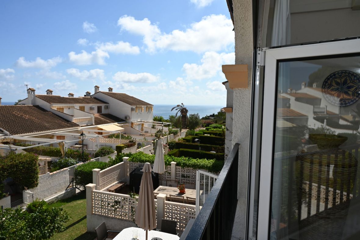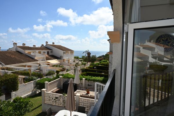 Middle Floor: Access to the home from a private street in the complex. Outside, there is a private parking space and a small west-facing terrace. Upon entering, we find a WC, a semi-independent kitchen, and a spacious living room with plenty of natural light and and lovely side sea views! The windows have been upgraded, double glazed with aluminium framing, and open up completely to enjoy even more the beautiful views.