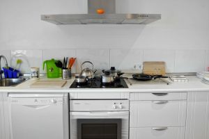 The apartment is sold without furniture but some white goods are included.