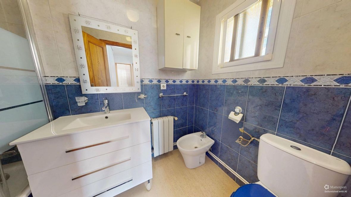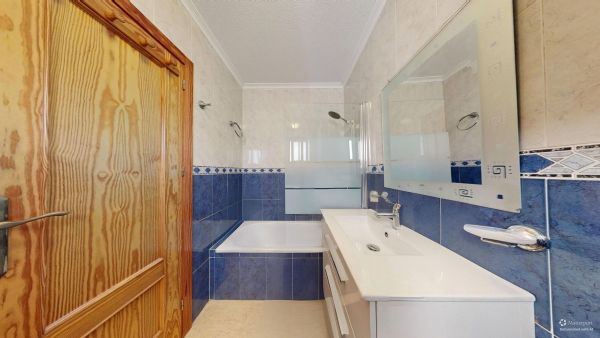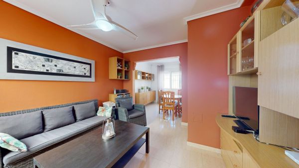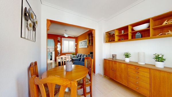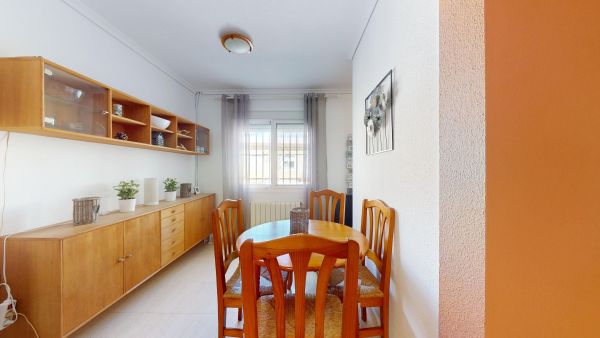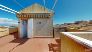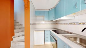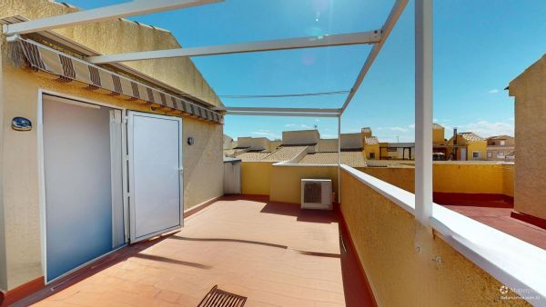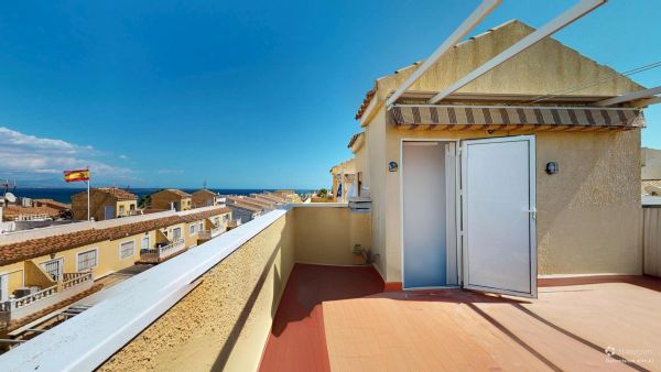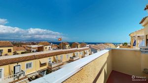 Fabulous 3-storey home with a solarium, basement, and front terrace. Excellent location in a quiet complex in Gran Alacant with a fantastic communal pool. Beautiful mountain and sea views from the solarium.