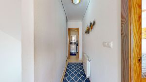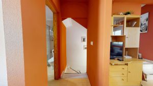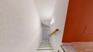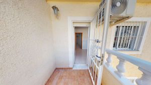 Entrance through a spacious two-level terrace with a large lockable storage room, perfect for relaxing outdoors in this peaceful area.