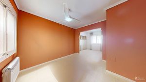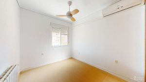 Two double bedrooms with built-in wardrobes and a bathroom with a bathtub. The master bedroom has an AC unit and a small balcony.