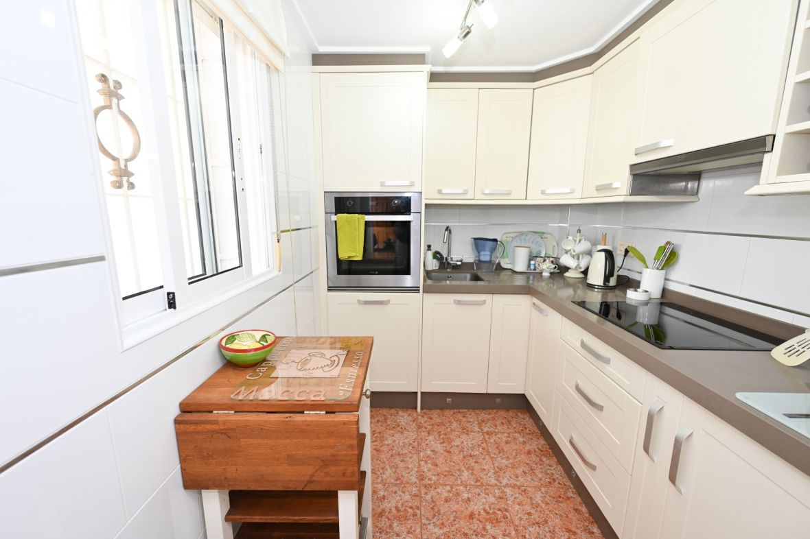 De aquí entramos al amplio salón-comedor, con aparato de aire acondicionado, y de aquí a la moderna y estilosa cocina, reformada hace unos 7 años, completamente equipada con lavavajillas, horno, vitro, microondas, cafetera etc.