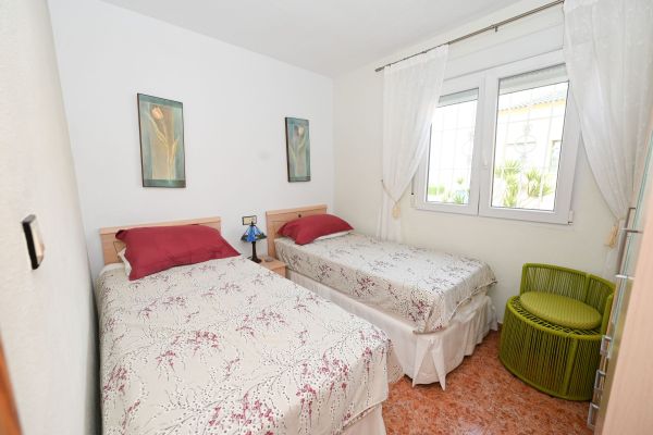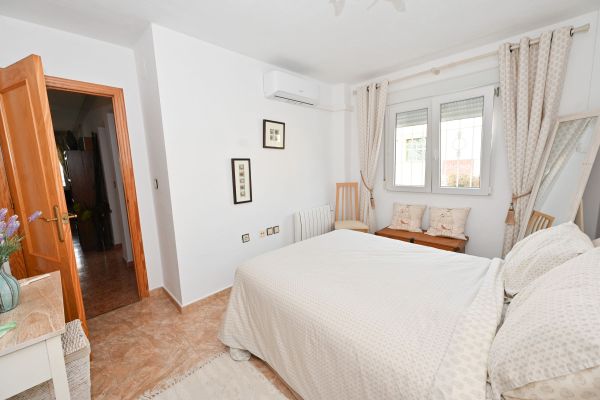 Los dos dormitorios dobles son muy luminosos. El principal tiene cama de matrimonio, aparato de aire acondicionado y armario empotrado vestido. El segundo tiene armario y dos camas de 90. En ambos dormitorios se han instalado ventanas tipo climalit.